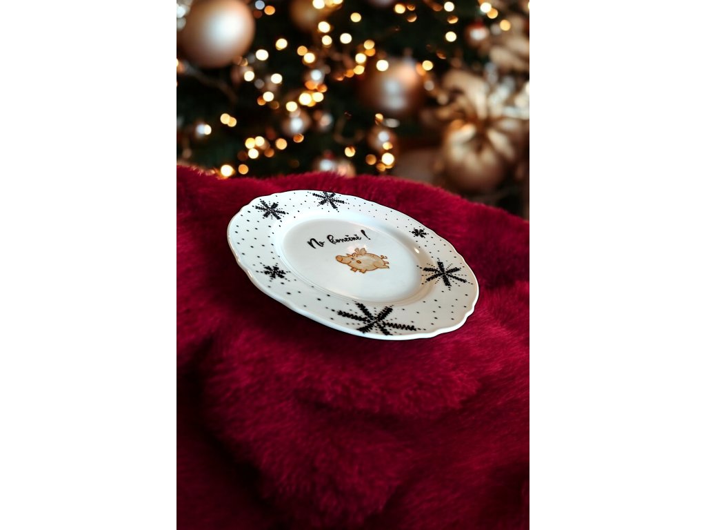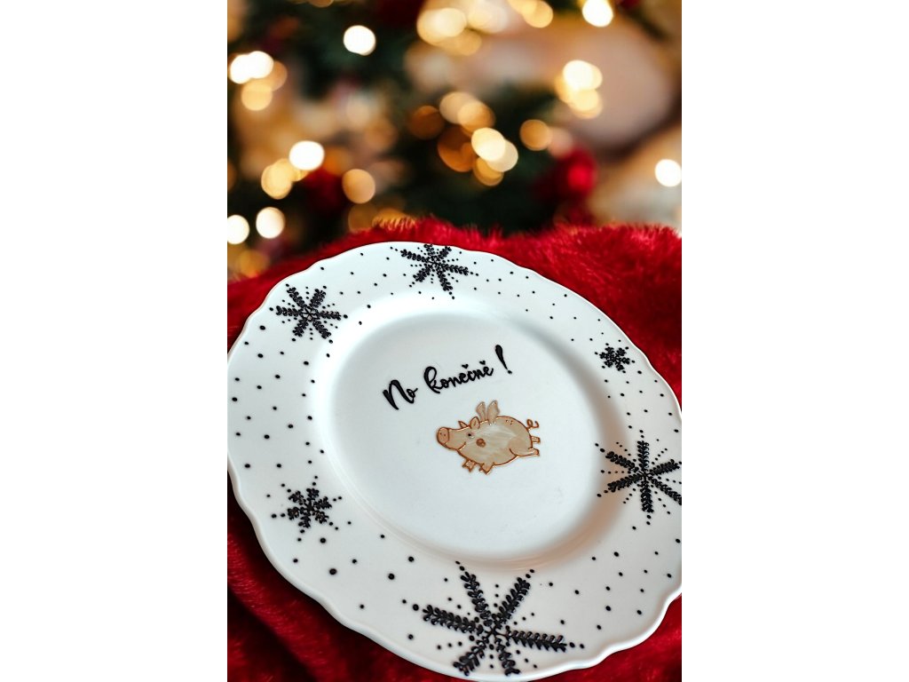 NO KONEČNĚ, váš Štědrý den bude plný zlatých okamžiků s naším ručně malovaným talířem! Tento talíř o průměru 28 cm vás provede tradiční českou legendou. Když na Štědrý den vynecháte maso, říká se, že uvidíte zlaté prasátko. A my vám teď umožníme, abyste si to zlaté prasátko přinesli až na váš stůl!
