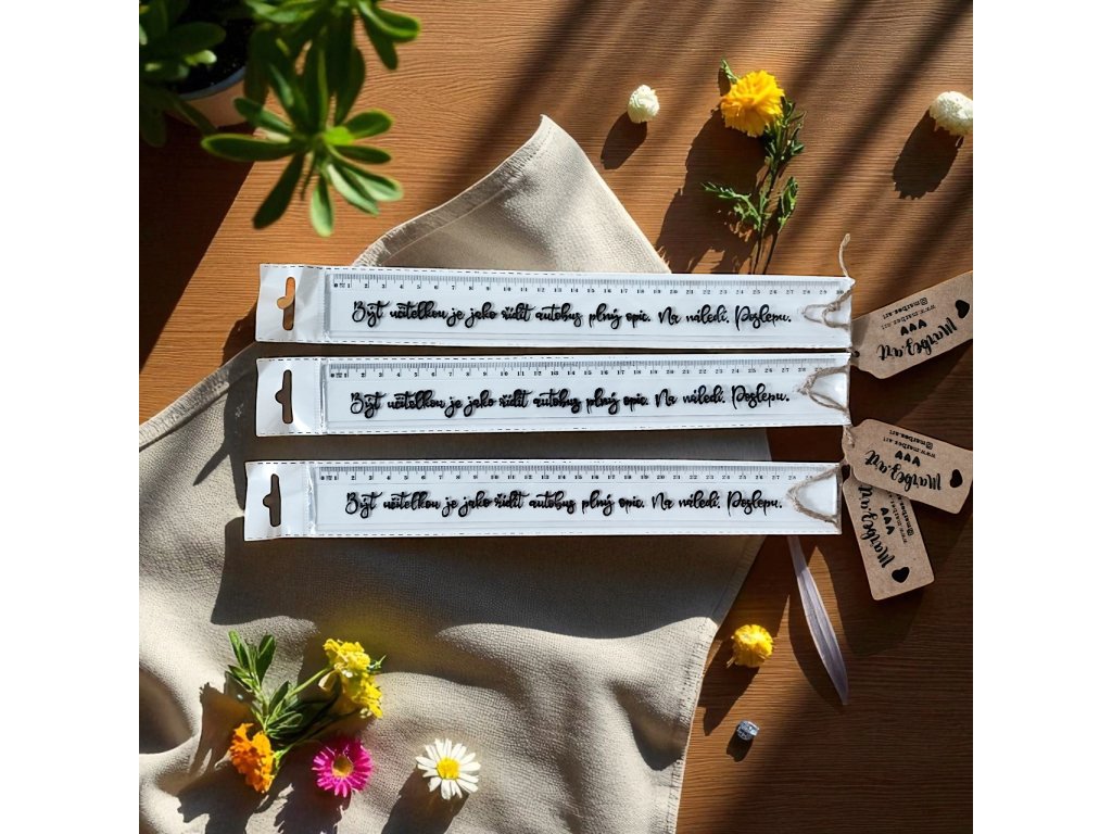 Toto ručně popsané transparentní pravítko o délce 30 cm je perfektní malý dárek, který rozesměje každého pedagoga a zároveň mu dá jasně najevo, že jeho (nadlidské) úsilí je vidět.