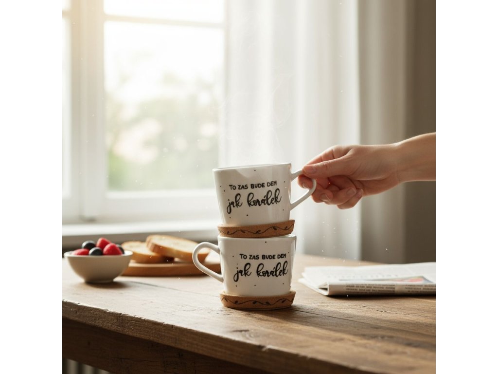 Zapomeňte na obyčejné momenty a přeneste se do světa jedinečného umění s naším ručně malovaným hrnkem s ručně vypalovaným podtáckem, který přináší do vašeho domova kousek autentičnosti a radosti.