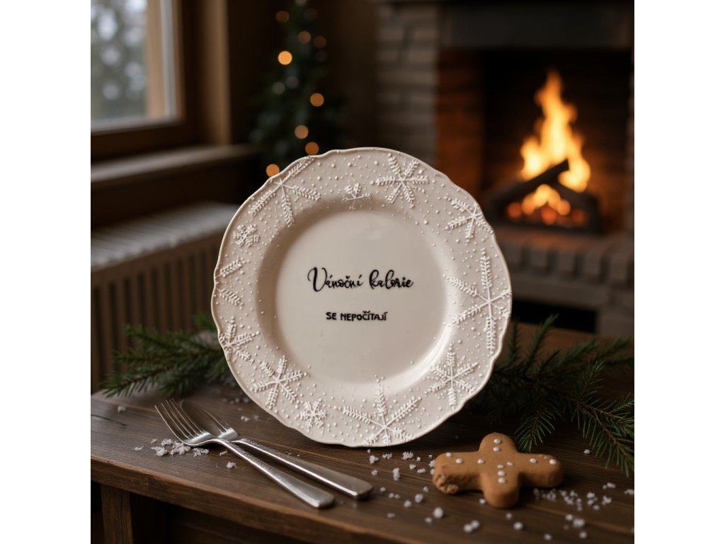 Ručně malovaný mělký talíř "Vánoční kalorie se nepočítají" 28 cm