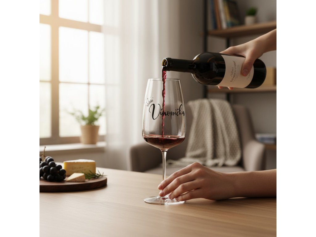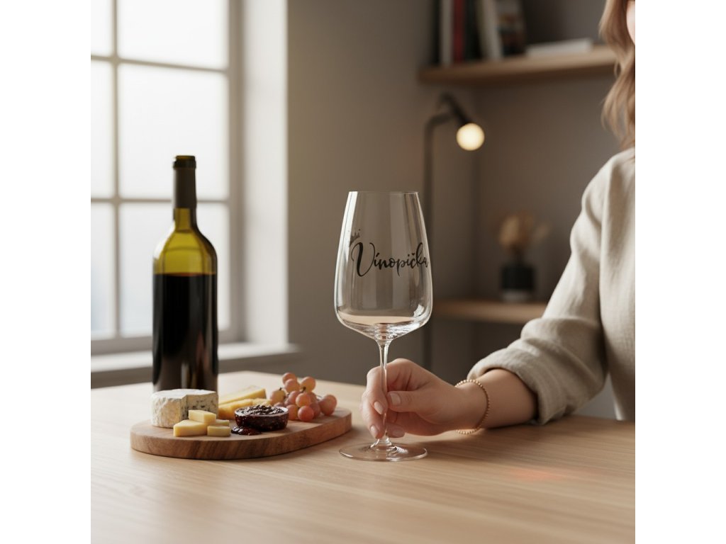 Každá sklenice je vyrobená s maximální péčí a pozorností k detailům. Nápis "Vínopička" je hravým a šarmantním výrazem vašeho nadšení pro víno, a perleťová korunka zdobící sklenici přidává do jejího designu nádech krásy a noblesy.